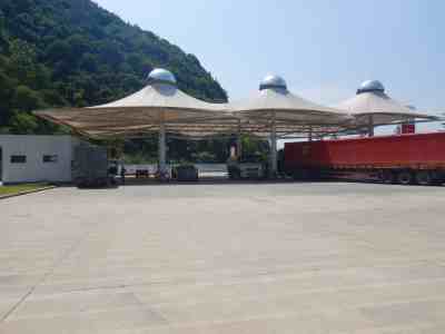 加油站設置汽油卸油和加油油氣回收系統(tǒng)。加油區(qū)設置加油罩棚,罩棚為鋼結構罩棚。罩棚下設置2臺雙油品四槍電腦稅控加油機,2臺單油品(柴油)四槍電腦稅控加油機(罐區(qū)潛油泵供油)以及1臺尿素液加注機;埋地油罐區(qū)設有4只30m³的埋地臥式單層鋼制油罐(非車道罐),設防滲罐池。其中30m³汽油罐2只(分別為92#汽油罐、95#汽油罐),2只30m³柴油罐,油罐總容積折算為90m³(柴油罐折半計入),根據(jù)《汽車加油加氣加氫站技術標準》GB50156-2021的相關規(guī)定,該加油站為三級加油站。加油站充電區(qū)設有1套分體式一機四樁綜合充電系統(tǒng)(功率360kW),根據(jù)《綜合供能服務站建設規(guī)范》(DB33/T2136-2018)的規(guī)定,充電區(qū)塊規(guī)模為Ⅳ級,屬于三級綜合供能服務站。
